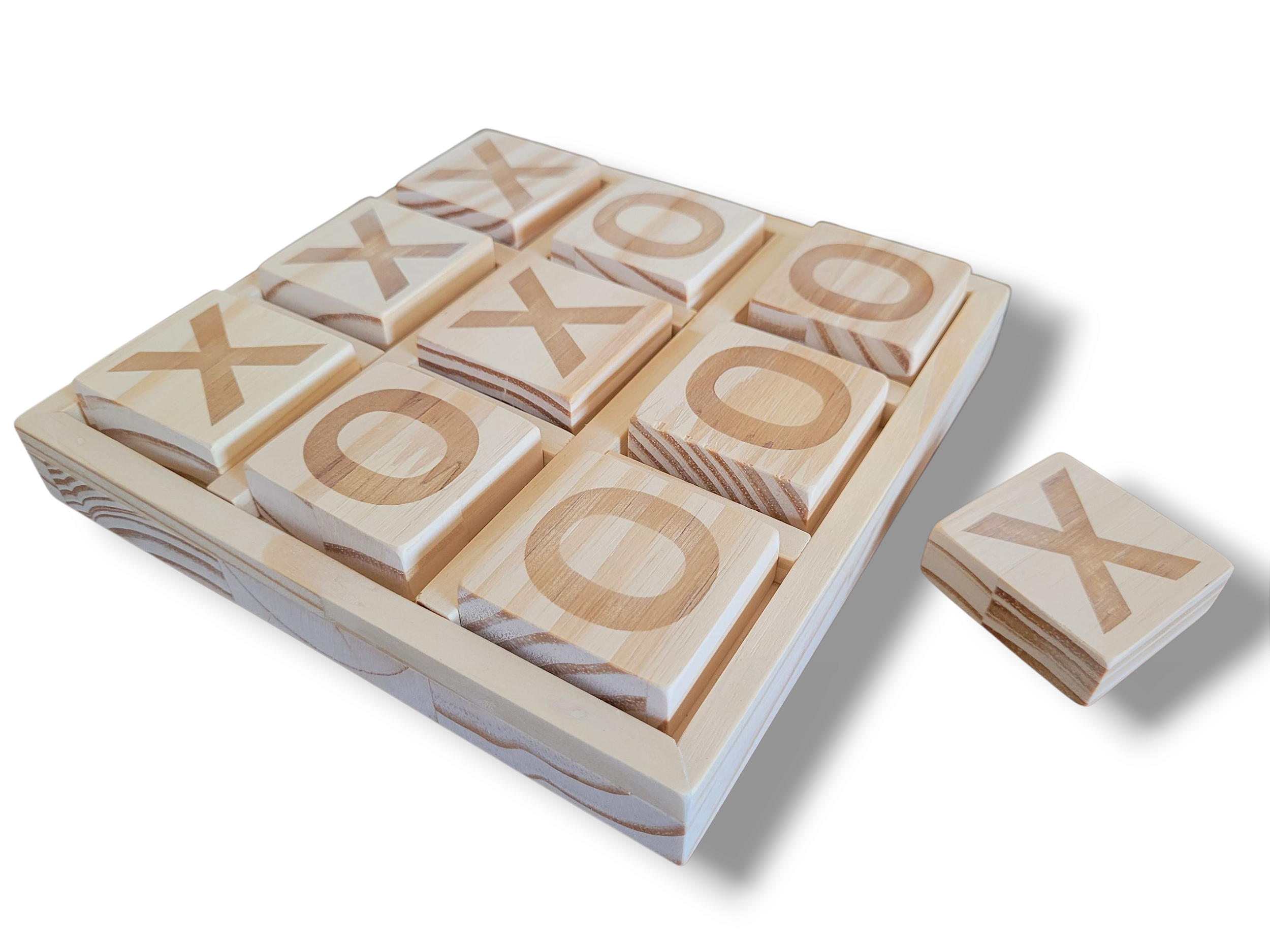 Feito manualmente, com Madeira pinus de Reflorestamento (ecologicamente correto), com gravação à laser.